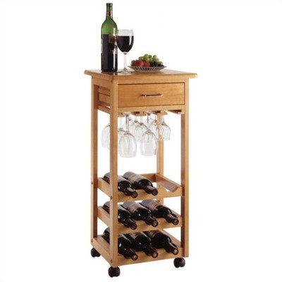 - Wine Cart with Glass Rack, Drawer, Holds 9 Bottles