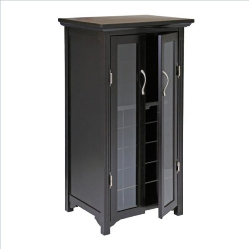 Winsome 20 - Bottle Wine Cabinet keeps your wine stored with elegance! Stock up on vino and stay organized with this elegant cabinet. Reds and whites will be close at hand in this beautifully finished contemporary styled piece. Details: Crafted from fine beech wood ; Attractive espresso finish; Features 2 glass doors; Finished with silver-toned hardware; French doors provide showcase for your wine collection; Holds 20 bottles; Includes 3 stemware hangers; Easy assembly required; Approx. 40" h. x 22" w. x 17" d. Weighs approx. 60 lbs.; Give your wines a stylish home! Order Today! Winsome 20-Bottle Wine Cabinet